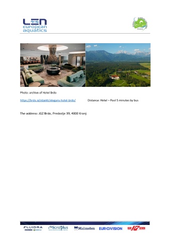 Photo: archive of Hotel Brdo https://brdo.si/objekti/elegans-hotel-brdo/ Distance: Hotel – Pool 5 minutes by bus The address: JGZ Brdo, Predoslje 39, 4000 Kranj
