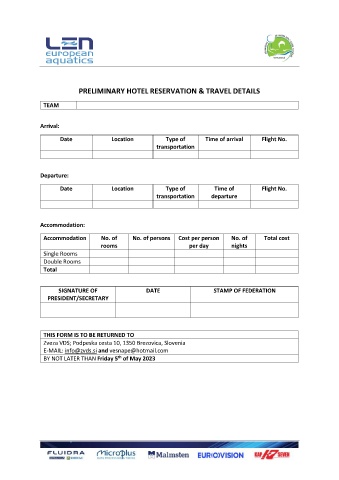 PRELIMINARY HOTEL RESERVATION & TRAVEL DETAILS