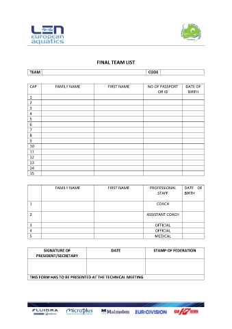 FINAL TEAM LIST